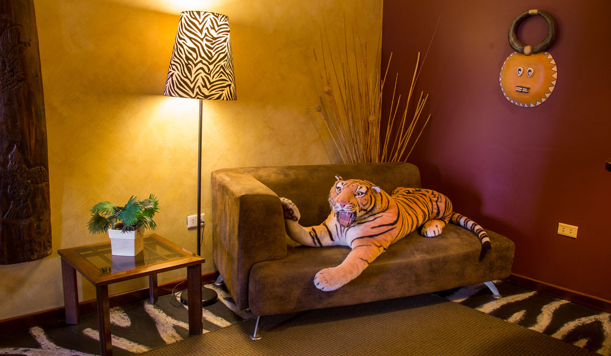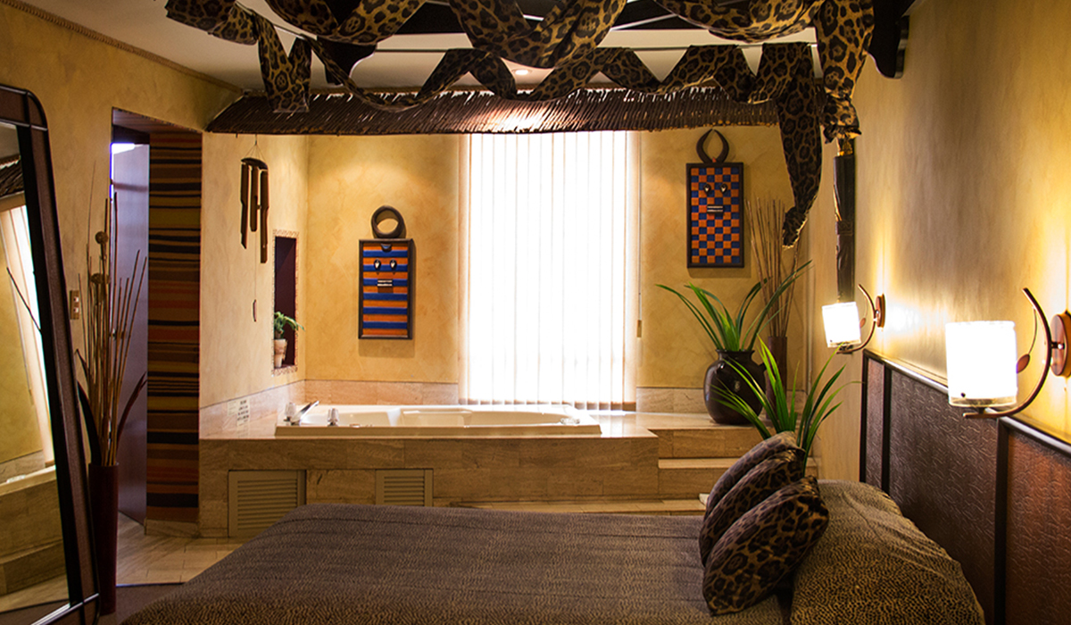 "Un espacio predilecto para los amantes de la aventura"Cama con dosel revestido a modo de jungla, espejos, jacuzzi para dos